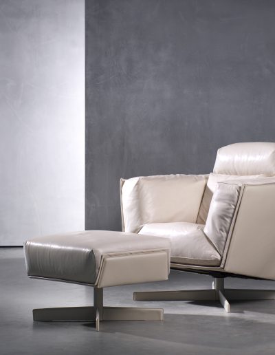 Zanurz się w luksusie XXI wieku dzięki obrotowemu fotelowi HEIT z podnóżkiem – szczytowemu ideałowi miękkich siedzisk. Kanciastość HEIT równoważą wyrafinowane proporcje, stalowa tapicerowana rama i nogi pokryte wytrzymałą włoską skórą siodłową oraz poduszki pokryte miękką skórą lub wykwintnymi tkaninami. Fotel, z którego nikt nie chce wstawać.