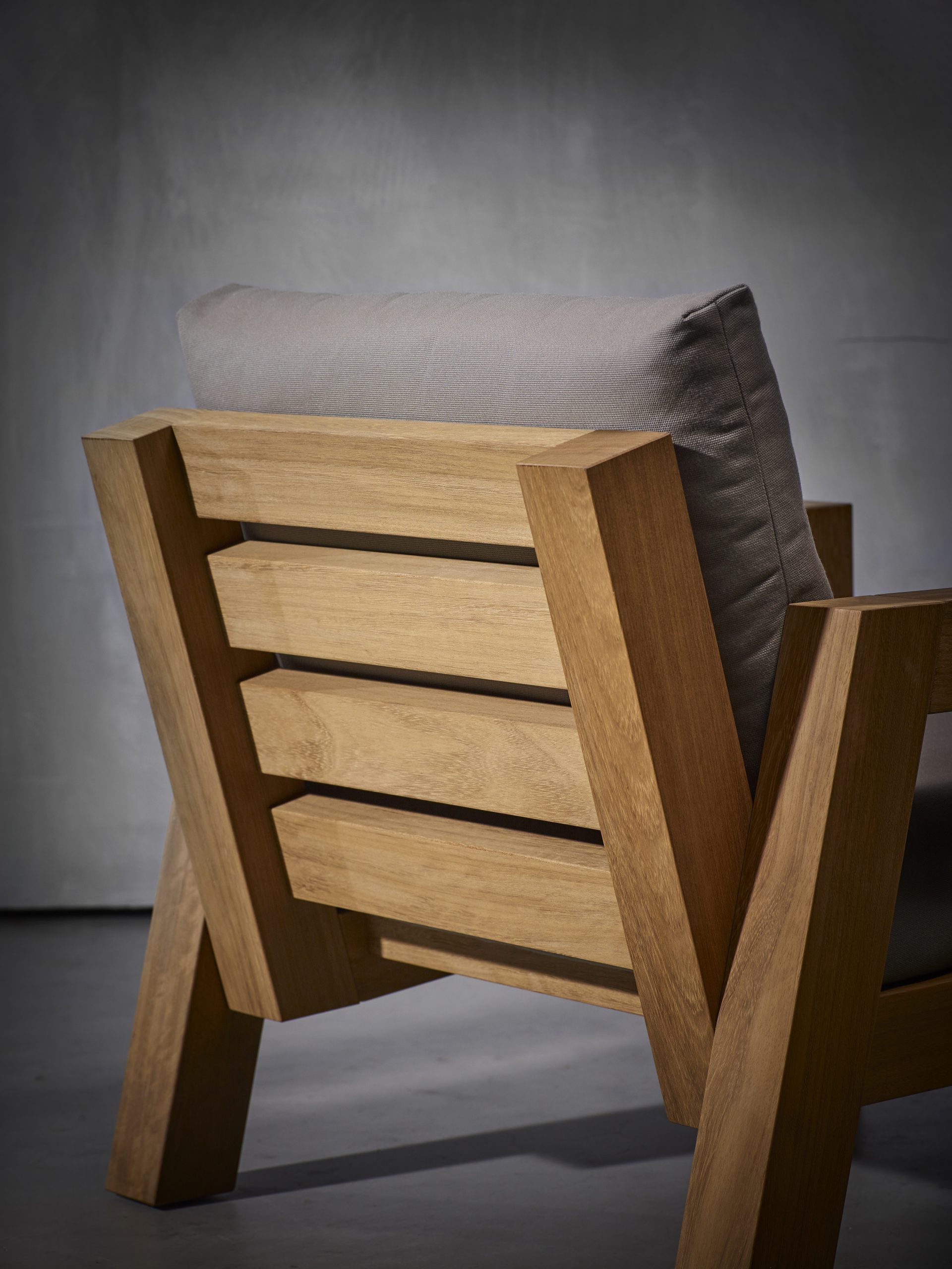 Drewno tekowe z okuciami ze stali nierdzewnej. Poduszki siedziska i oparcia wykonane są z poliuretanu o otwartych komórkach, hydrofobowego. Opcjonalnie poduszki oparcia wypełnione włóknami syntetycznymi.