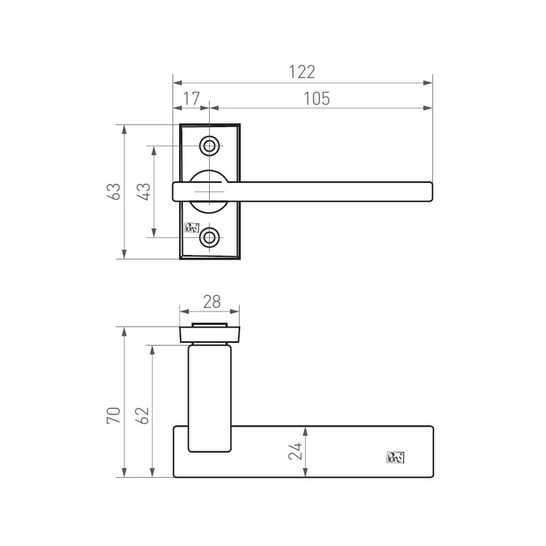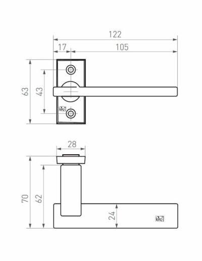 Długość: 122mm Wysokość rozety: 63mm Szerokość rozety: 28mm