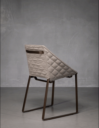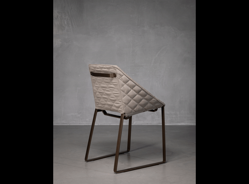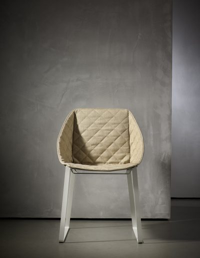 Połączenie tkaniny z efektowną, malowaną proszkowo stalą sprawia, że krzesło do jadalni KEKKE